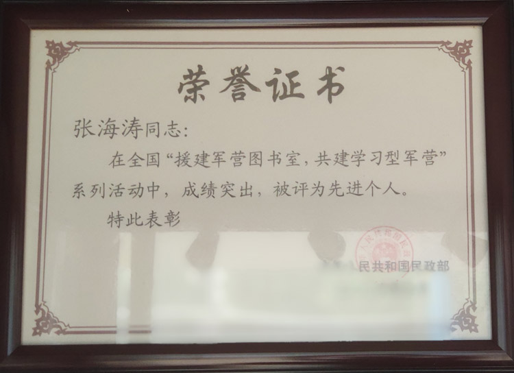 援建军营图书室人建学习型军营个人先进