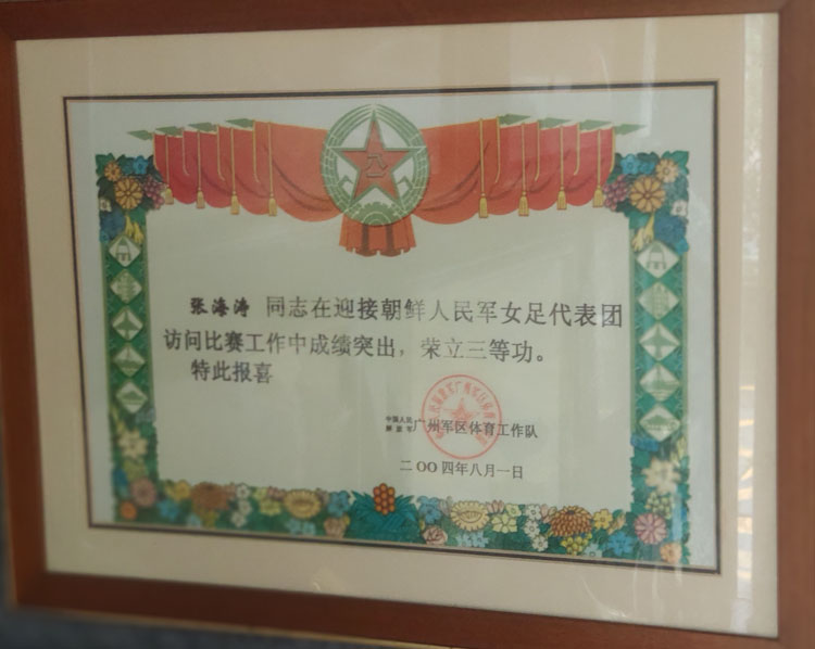2004-8迎接朝鲜人民军女足代表团访问比赛工作成绩突出荣立三等功