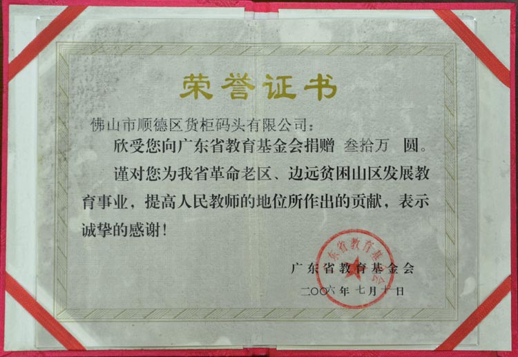 2006-7向广东省教育基金会捐赠30万元
