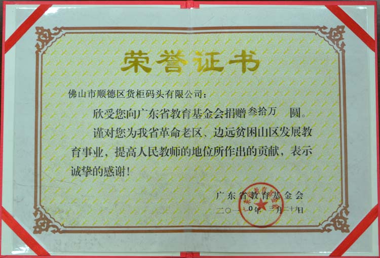 2010-3向广东省教育基金会捐赠30万元