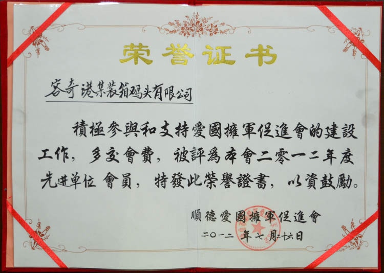 2012-7顺德区爱国拥军促进会先进会员单位