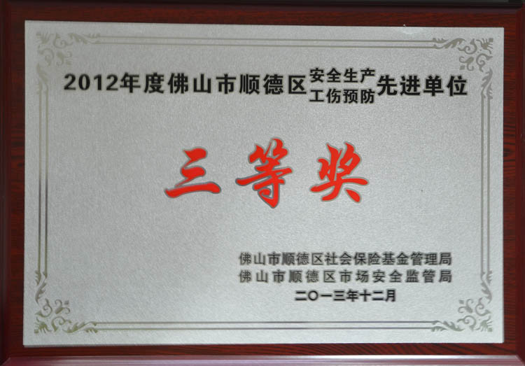 2012年度佛山市顺德区安全生产工伤预防先进单位三等奖