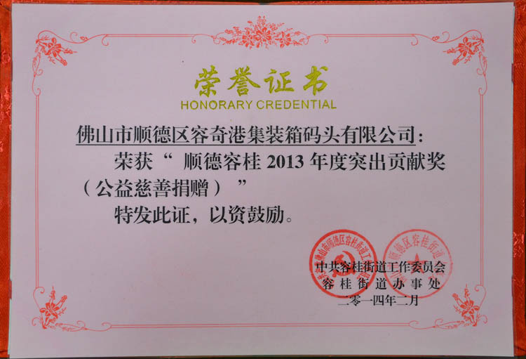 2013年度顺德容桂公益慈善捐赠突出贡献奖