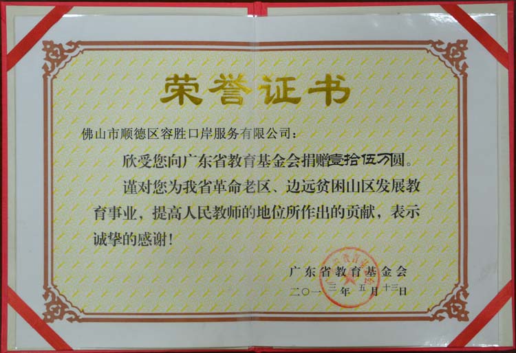2013-5向广东省教育基金会捐赠15万元