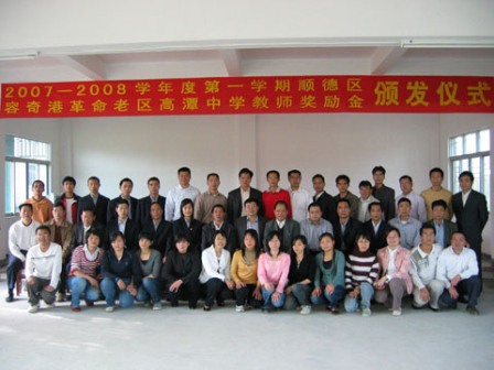 2008年1月11日,由总经理孙家民带队,我公司11人员工代表赴惠东县高潭镇参加了2007年--2008度第一学期 “顺德区容奇港革命老区高潭中学教师奖励金”的颁发仪式。