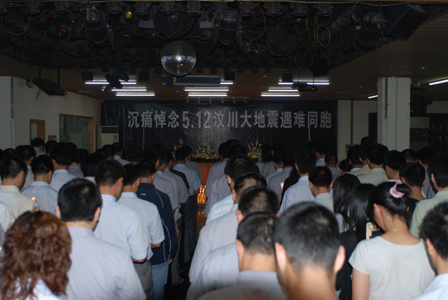 5月21日晚8点,公司党员、团员、管理人员和员工代表200多人,在饭堂举行了烛光追思会,沉痛悼念5.12汶川大地震遇难同胞。