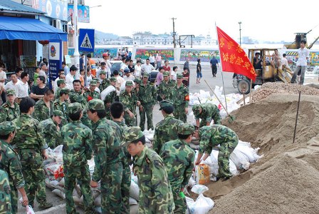 2008年6月16日公司民兵积极配合容桂抗击50年一遇洪峰