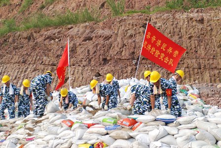 2008年6月23日公司民兵参加飞鹅山抢险