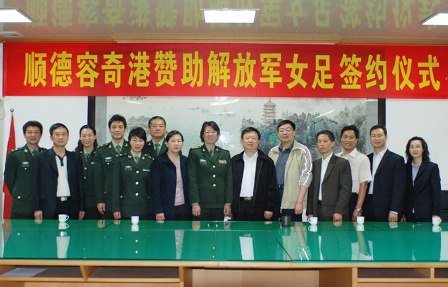 4月2日下午,顺德货柜码头和解放军女足在顺德货柜码头有限公司会议室举行了简单而隆重的“顺德容奇港赞助解放军女足签约仪式”。解放军女足今年将参加全国女足超级联赛、足协杯和第十一届全运会等重大赛事,届时会穿上印有“顺德容奇港”字样的衣服参加比赛,为公司宣传。