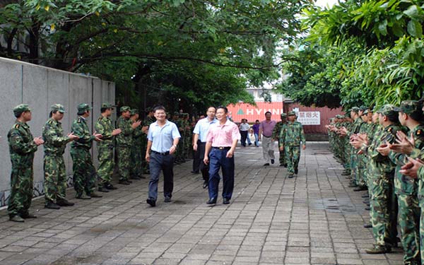 7月30日下午,容桂街道办领导、各基层民兵营长一行近40人来到我公司,参观了民兵营的设施,听取了公司领导关于民兵营“四个基本”建设的汇报,对我公司民兵营建设给予了高度的评价。