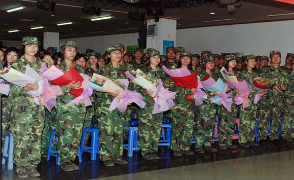 会议一开始,大家以鲜花和掌声热烈欢迎高炮班女民兵的凯旋。女民兵们在艰苦的条件下,克服生活上的种种困难,刻苦训练,顽强拼搏,在刚刚结束的广东预备役高炮师年度实弹战术演习中,巾帼不让须眉,沉着镇定,取得了优异的成绩,得到了师领导的高度赞扬。