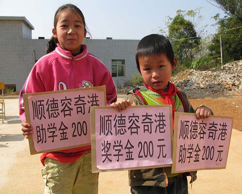 1月12、13日,公司孙总一行6人与省教育基金会余秘书长等人一同前往惠州市惠东县“高谭中学”和河源市龙川县“上扬顺德容奇港小学”,代表公司全体员工向这两所学校的师生颁发2009年下学期“顺德容奇港奖教助学金”,并为“上扬顺德容奇港小学”出资援建多媒体教学室。