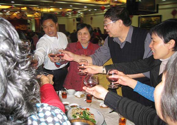 庆祝现场气氛热烈,领导们给女员工派发了慰问金,并逐一向女员工们祝酒。