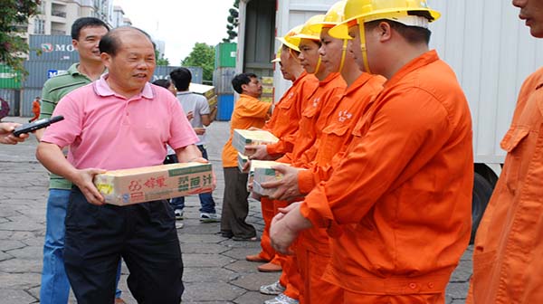 2010年7月9日区工会及容桂街道工会慰问码头高温作业员工