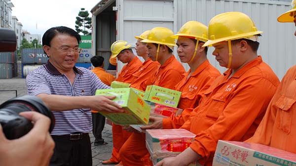 7月9日上午,区工会及容桂街道工会来到我公司码头作业现场,慰问高温下作业的一线员工,送来了一批清凉饮料和慰问金,并了解了公司高温津贴发放执行情况。