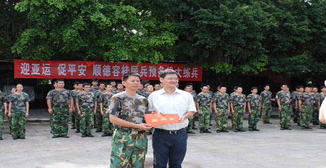 在观看了我司民兵为亚运安保而开展的日常训练后,赖雪辉主任对我司民兵严整的军容、刻苦的训练给予了高度的评价。他指出,容奇港民兵营多年来一如既往的支持地方经济建设、保一方平安,地方政府对此表示感谢;他还指出,容奇港民兵营此次担负亚运安保任务,任务更艰巨,责任更重大,希望全体民兵刻苦训练,坚决完成此次亚运安保任务。