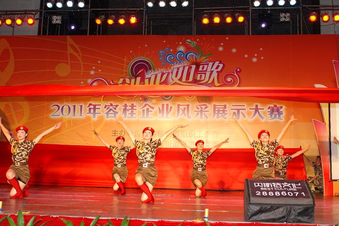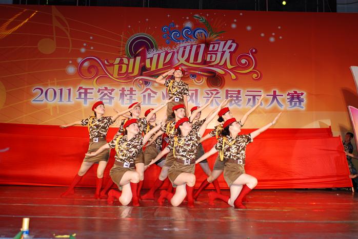 6月18日晚,“创业如歌--2011年容桂企业风采展示大赛”在容桂体育中心举行,由我公司党总支部选派参赛的节目《潇洒女民兵》荣获金奖。