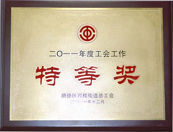 在2012年1月5日举行的容桂表彰大会上,公司工会获 “2011年度容桂工会工作特等奖”。