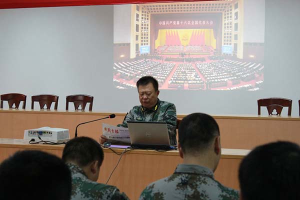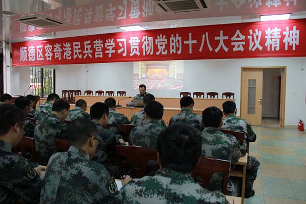 全体民兵重新观看了2012年11月8日党的十八大开幕式,认真听取了胡锦涛同志所做的工作报告,并学习了2012年11月16日胡锦涛同志和中共中央总书记、中央军委主席习近平出席中央军委扩大会议发表的重要讲话。