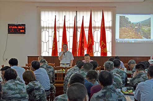 公司党委书记作讲话并以照片讲述救灾过程