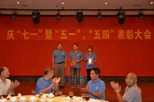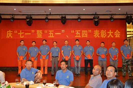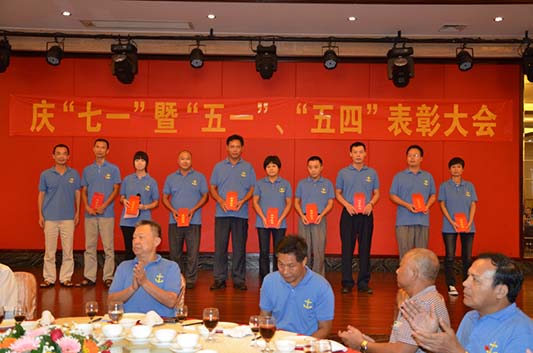 7月1日中午,公司全体党员及干部员工欢聚一堂,举行庆“七一”暨“五一”、“五四”表彰大会。