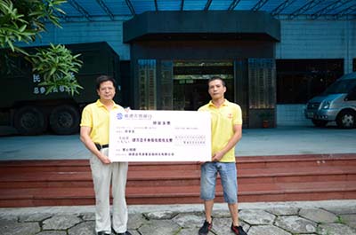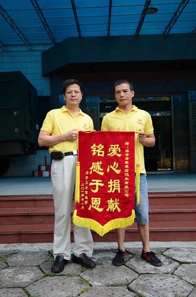 8月14日上午,公司将全体干部员工所筹集的106,050元爱心捐款分别捐赠给作业部郑东广、车队邓学文,共同帮助他们的家庭渡过难关,使得他们的亲属获得治疗的机会,延续生命。郑东广、邓学文分别向公司赠送锦旗致谢。