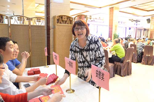 祝酒仪式拉开了晚宴的序幕,员工们在尽情品尝美味佳肴的同时进行幸运抽奖活动,抽奖现场欢声笑语,其乐融融,气氛热闹非凡。此次幸运抽奖活动,人人有份,永不落空,幸运之神眷顾每一位员工,中奖率100%,各奖品纷纷花落各家!