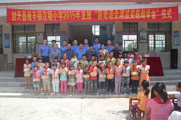 6月25日起,公司员工代表先后与广东省教育基金会许副秘书长等人一行二批分赴龙川县上扬顺德容奇港小学和封开县南丰镇勒竹小学、平滩小学、汶塘小学,颁发2015年度“容奇港余潮波奖教助学金”,代表公司全体员工向受表彰的老师、同学们表示衷心的祝贺,向受资助的同学表示深切的慰问并进行了交流互动。