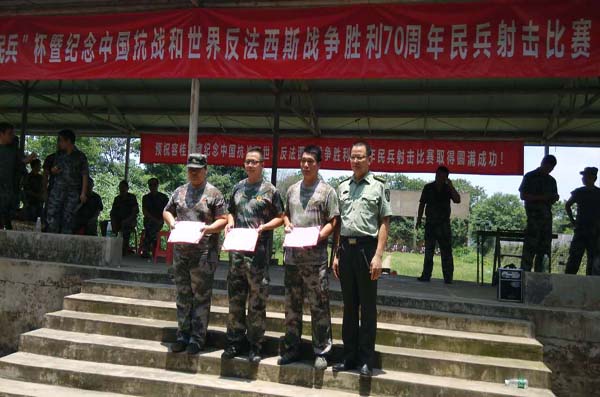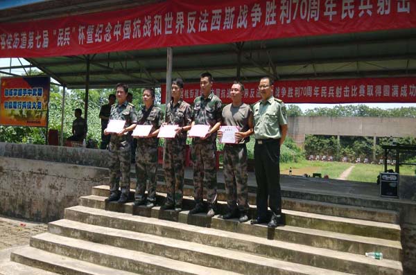 为纪念中国抗战和世界反法西斯战争胜利70 周年,容桂街道武装部组织基层民兵开展大练兵活动,并在中国共产党建党九十四周年之际,于6月30日在穗香射击训练场举行民兵预备役射击比赛。